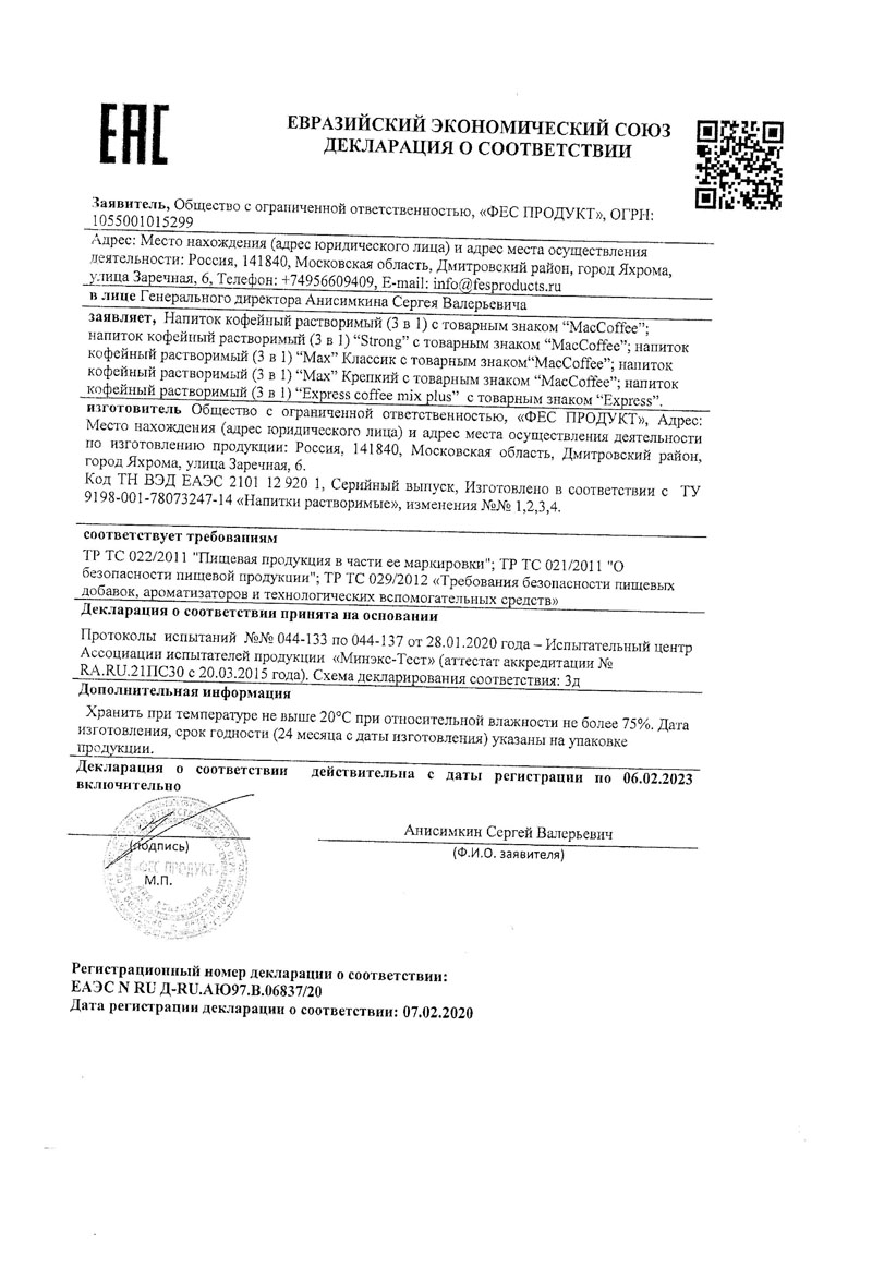Сертификат соответствия |