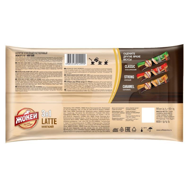 Кофе порционный «Жокей 3 в 1. Мягкий» (50 пакетиков в упаковке) — это растворимый кофе с сахаром и сливками. Настоящий кофе-латте с выраженным молочным вкусом.