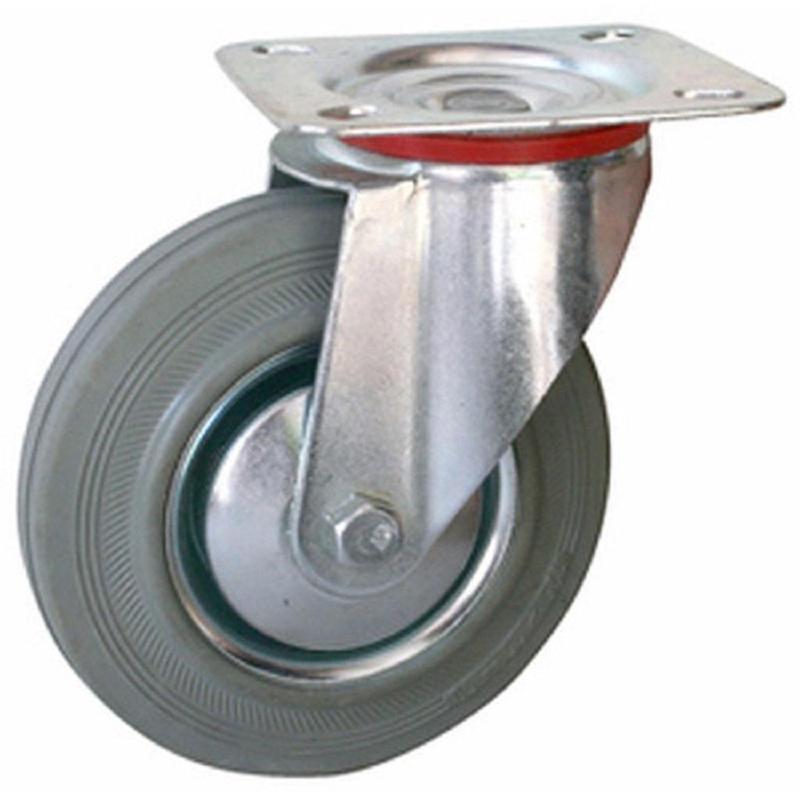 Колесо поворотное SCf 160. Шина: литая резина, состоящая из твердого резинового сердечника и высокоэластичного контактного слоя. Цвет: серый. Обод: из листовой стали, со стальной ступицей, на игольчатом подшипнике, оцинкован. Колесная опора: поворотная. Диаметр: 160 мм. Нагрузка: 130 кг.
