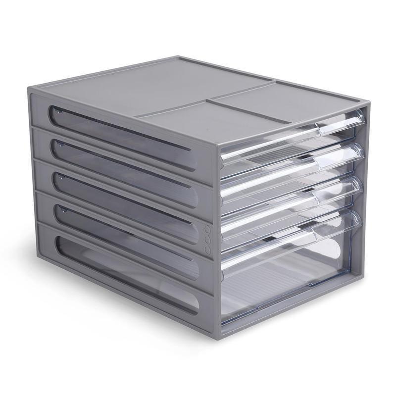 Бокс с 4-мя выдвижными лотками для документов формата А4 и канцелярских мелочей. Изготовлен из полистирола. Устойчивый, прочный корпус гарантирует сохранность содержимого, ограничитель, имеющийся на лотках, препятствует выпадению даже самых мелких предметов. На каждом лотке есть место для подписи, что облегчает сортировку.