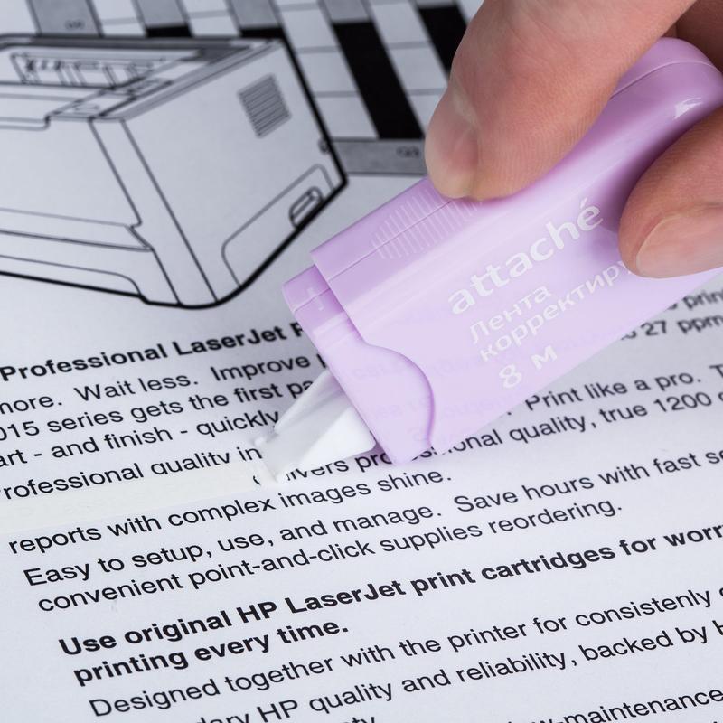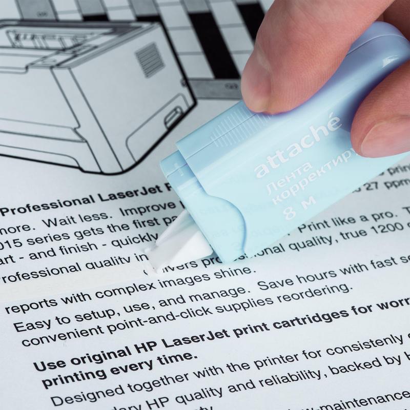 Корректирующая лента Attache Economy предназначена для исправления текста на любом типе бумаги. Не требует длительного высыхания, можно сразу писать по исправленному тексту. Съемный колпачок защищает ленту от высыхания. Имеет функцию подкручивания. Лента не оставляет следов и черных полос на документе при ксерокопировании или отправке по факсу. Общая длина корректирующей ленты — 8 м, ширина — 5 мм. Упаковка — полипропиленовый пакет с европодвесом. Внимание! Товар поставляется в нескольких вариантах цвета/дизайна (без возможности выбора).