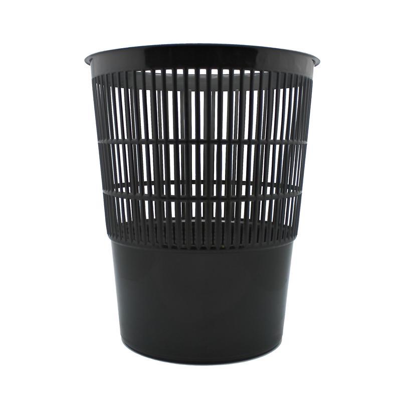 Корзина офисная для мусора. Выполнена из пластика. Цвет корзины:черный. Корзина для бумаги имеет объем 14 л.Размеры: нижний диаметр 200 мм, верхний диаметр 275 мм, высота330 мм.
