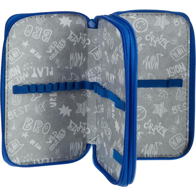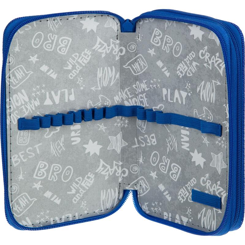 Пенал двухсекционный для мальчиков № 1 School Robot Hello без наполнения. Два вместительных отделения для канцелярских принадлежностей застегиваются на молнию. Материал — полиэстер/картон. Размер — 190×45×110 мм. Страна производитель: Россия.