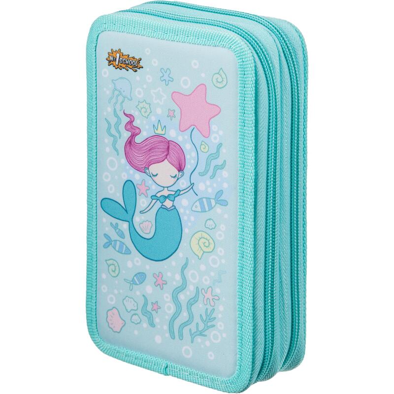 Пенал односекционный для девочек № 1 School Русалка без наполнения. Вместительные 2 отделения для канцелярских принадлежностей застегиваются на молнию. Материал — полиэстер. Размер — 190×45×110 мм.