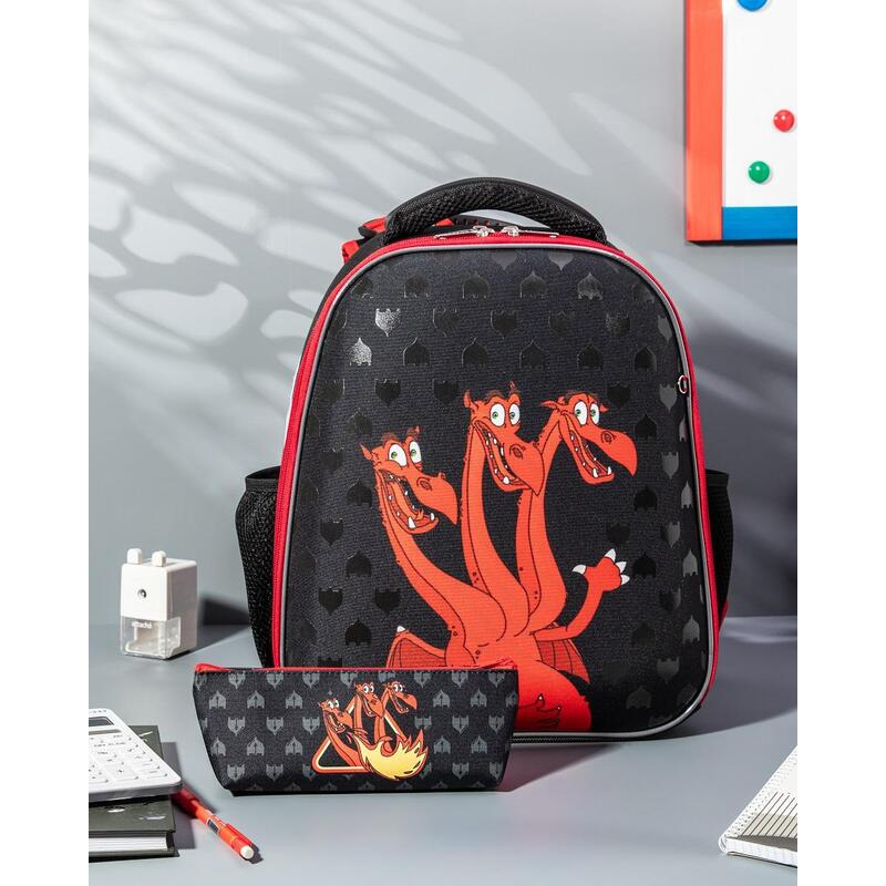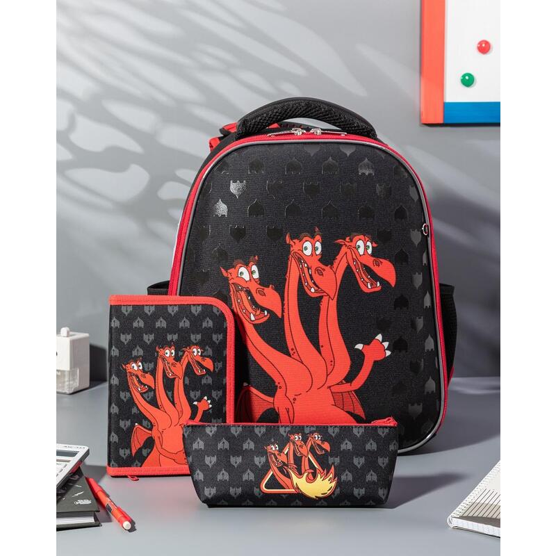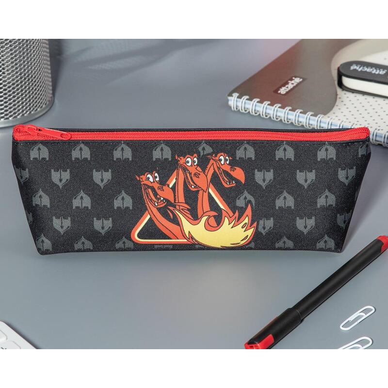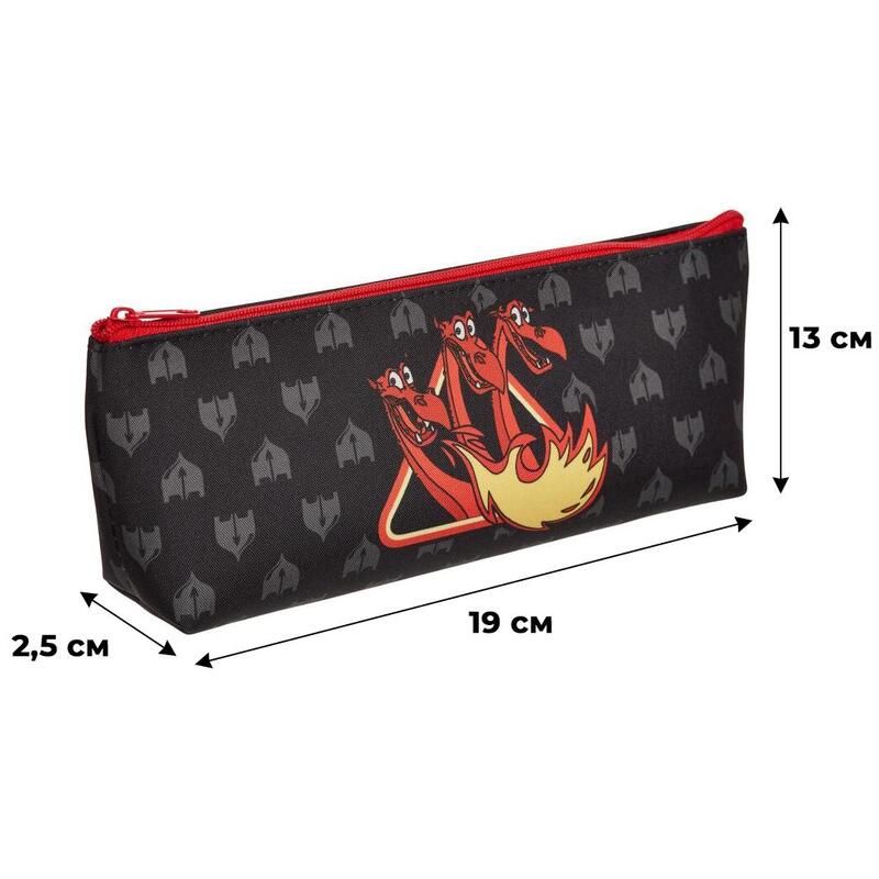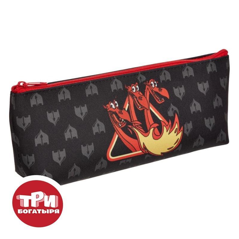 Пенал-косметичка Комус Три богатыря Горыныч. Вместительное отделение для канцелярских принадлежностей застегивается на молнию. Изготовлен из полиэстера. Без наполнения. Размер: 20×4×10 см. Дизайн: персонаж из мультфильма «Три богатыря» — Змей Горыныч.