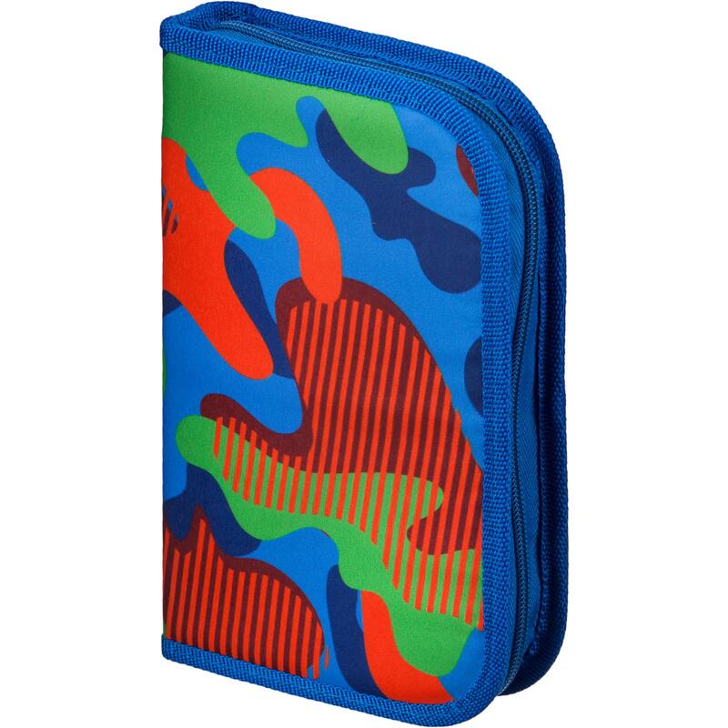 Пенал односекционный с двумя откидными планками для девочек и мальчиков № 1 School Милитари без наполнения. Вместительное отделение для канцелярских принадлежностей застегивается на молнию. Материал — ткань повышенной плотности Оксфорд 600 усиленный. Размер — 210×35×130 мм.