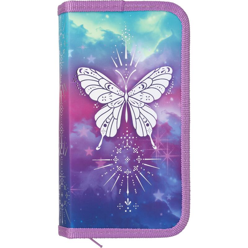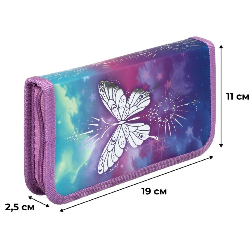 Пенал Комус Класс Волшебная бабочка — эргономичный контейнер из материала софт-тач. Используется для хранения и транспортировки канцелярских принадлежностей. Дизайн пенала выполнен в фиолетовом цвете с изображением бабочки. Предназначается для учениц дошкольных и младших классов. Пенал размером 190×25×110 миллиметров имеет форму «книжки», что придает ему особою компактность. В него с легкостью поместятся все необходимые для обучения инструменты. При этом они получат надежное хранение и будут всегда под рукой! Пенал идет в продажу без дополнительного наполнения. В рамках ребрендинга производится перевод данного артикула с ТМ № 1School на ТМ Комус Класс с сохранением всех потребительских характеристик товара. На переходный период допускается поставка данной продукции в двух вариантах дизайна.