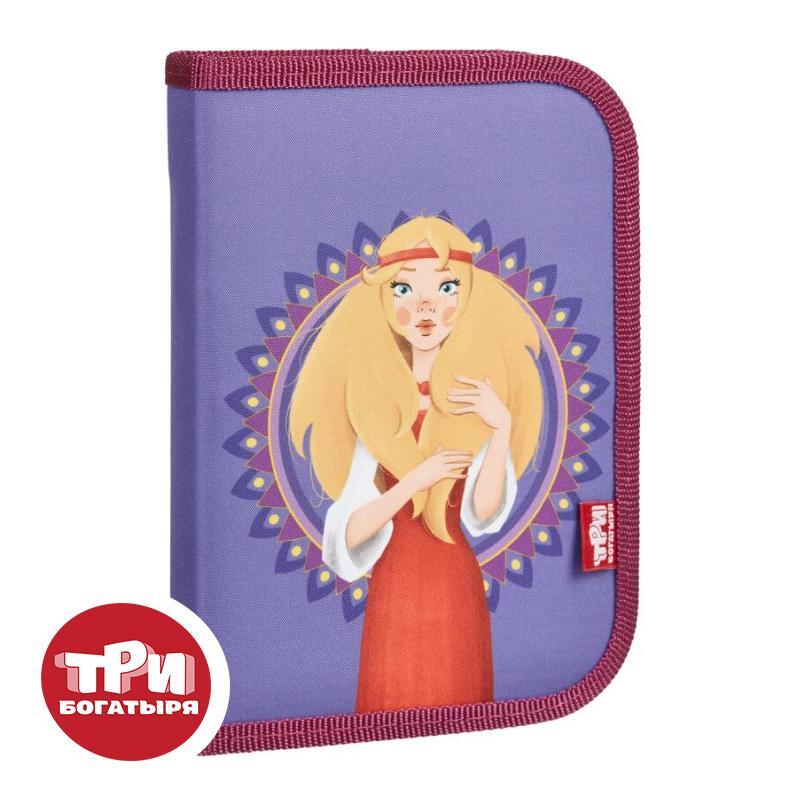 Пенал односекционный Комус Три богатыря Аленушка. Вместительное отделение для канцелярских принадлежностей застегивается на молнию. Изготовлен из полиэстера. Без наполнения. Размер: 19×2.8×13 см. Дизайн: персонаж из мультфильма ’Три богатыря’ — Аленушка.