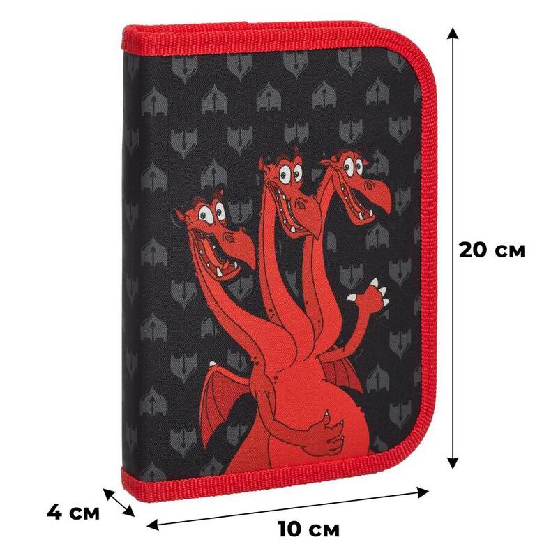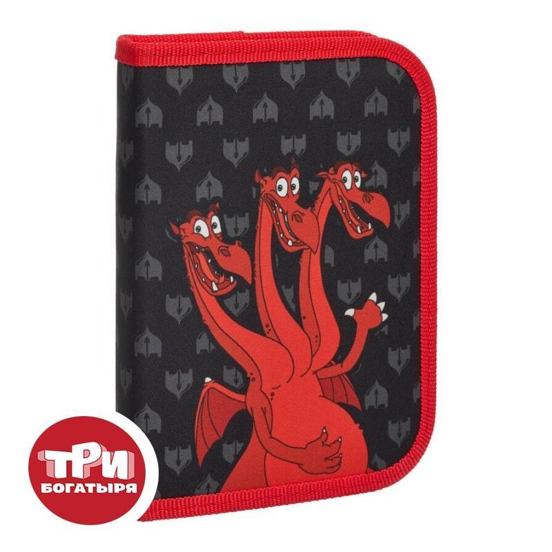 Пенал односекционный Комус Три богатыря Горыныч. Вместительное отделение для канцелярских принадлежностей застегивается на молнию. Изготовлен из полиэстера. Без наполнения. Размер: 19×2.5×13 см. Дизайн: персонаж из мультфильма «Три богатыря» — Змей Горыныч.