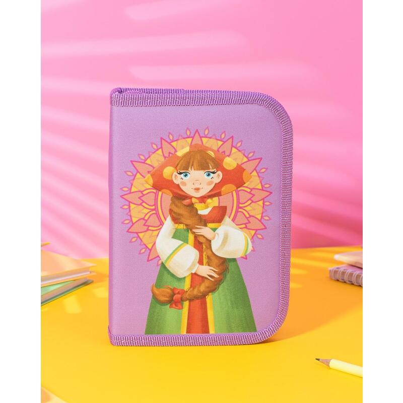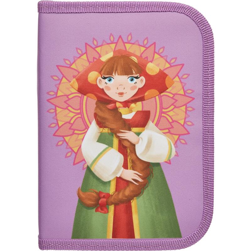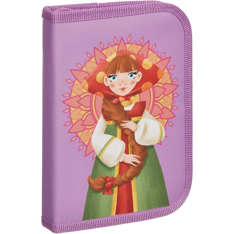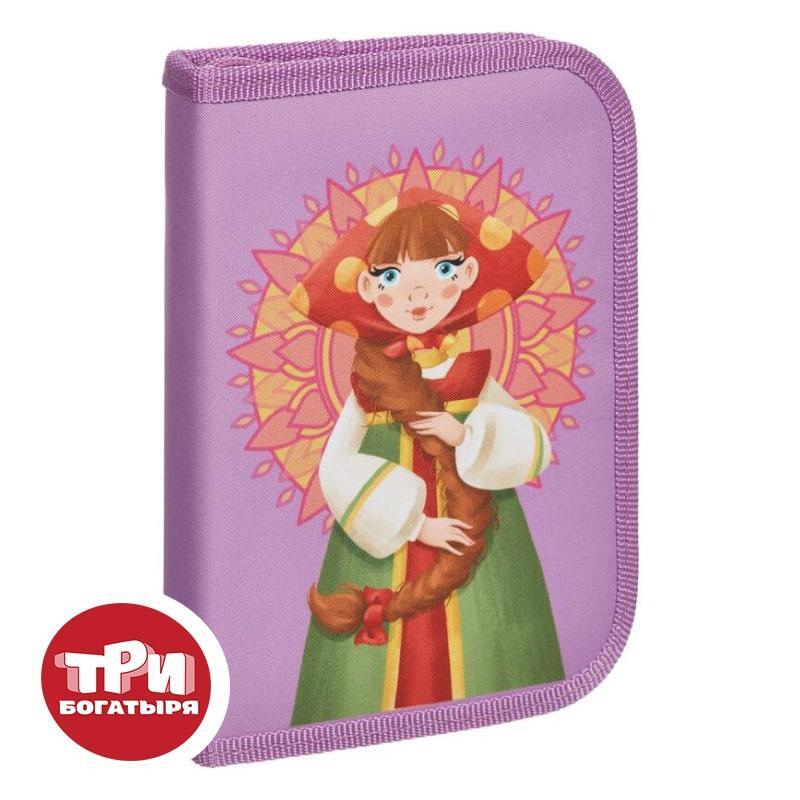 Пенал односекционный Комус Три богатыря Любава. Вместительное отделение для канцелярских принадлежностей застегивается на молнию. Изготовлен из полиэстера. Без наполнения. Размер: 19×2.5×13 см. Дизайн: героиня мультфильма «Три богатыря» — Любава.