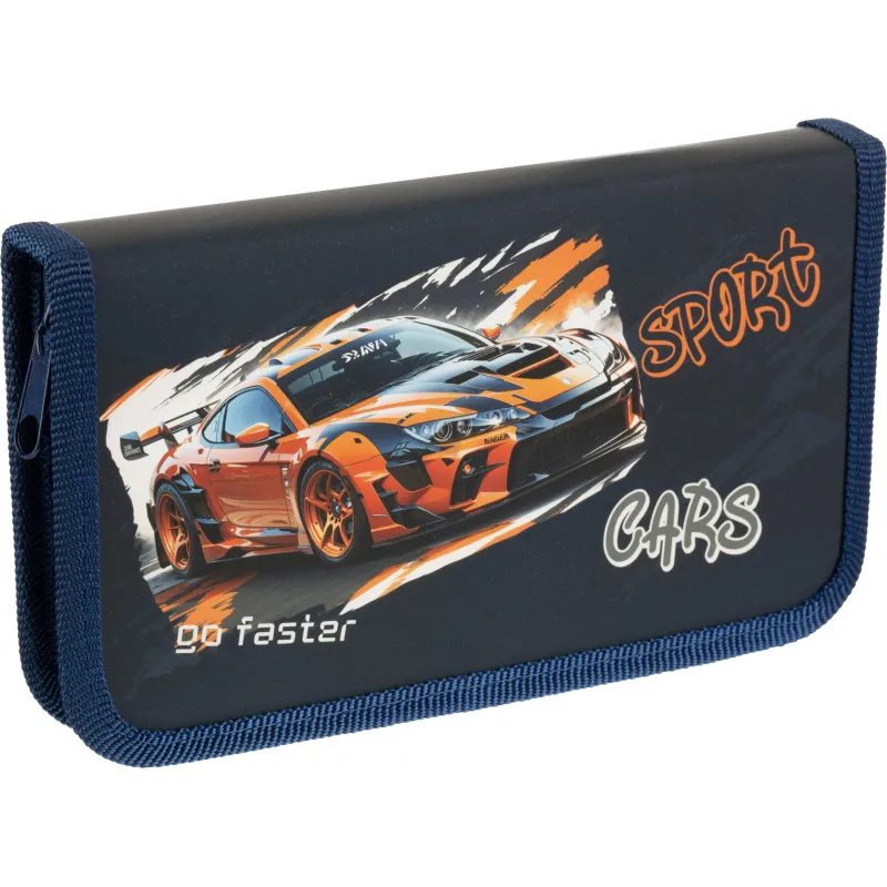 Изделие изготовлено из картона и полиэстера. Жёсткая основа сохраняет форму, а внешний слой устойчив к загрязнениям и износу. Яркий дизайн с изображением спортивных автомобилей делает пенал привлекательным для юных автолюбителей. Размер 19×11×2.7 см позволяет без труда разместить его в школьном рюкзаке.