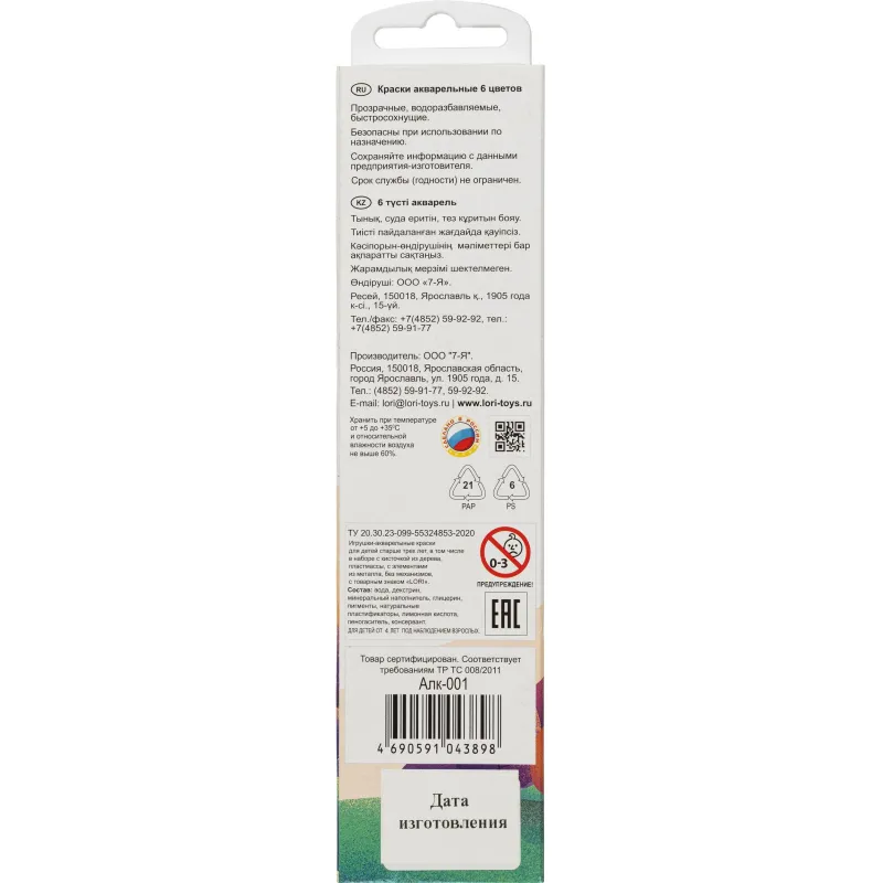 Акварельные краски предназначены для детского творчества и школьных занятий. В набор входит 6 цветов, размещённых в пластиковых кюветах. Краски легко набираются на кисть и хорошо распределяются по бумаге, позволяя выполнять как простые заливки, так и плавные переходы.