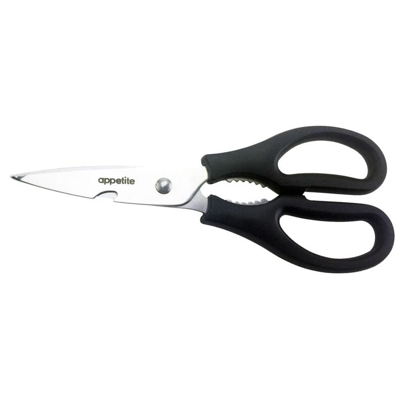 Кухонные ножницы Appetite 20 см прекрасно сочетают в себе многофункциональность, легкость в использовании и классический дизайн. Они изготовлены из нержавеющей стали и пластика, поэтому изделие долго прослужит и не потускнеет с годами.Ножницы хорошо справятся с любыми видами нарезания. Также они отлично подойдут для курицы, рыбы, мяса и других продуктов. — перед первым использованием требуется тщательно промыть изделия; — хранить изделия в чистом, сухом виде; — не рекомендуется использовать губки с абразивным слоем; — не рекомендуется промывка изделий в посудомоечной машине с использованием моющих средств, в состав которых входит активный кислород.