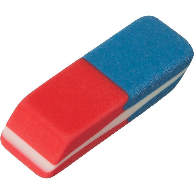 Комбинированный ластик Attache скошенной формы выполнен из термопластичного каучука. Половина красного цвета предназначена для удаления карандашных надписей, половина синего цвета выполнена с повышенным содержанием абразивных частиц и подходит для стирания надписей, сделанных ручкой. Размер ластика: 42x14x8 мм.