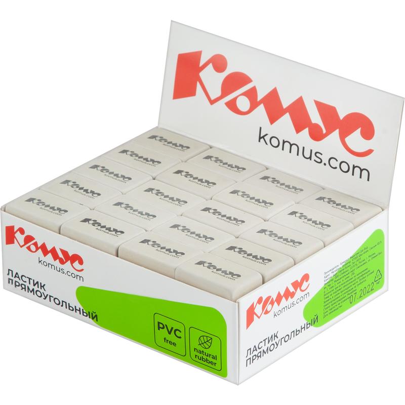 Высококачественный ластик Комус прямоугольной формы выполнен из натурального каучука. Не содержит ПВХ. Цвет ластика: белый. Предназначен для удаления карандашных надписей. Размер ластика: 26×18×8 мм. В картонном дисплее 80 штук.