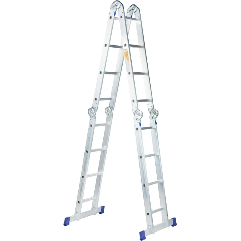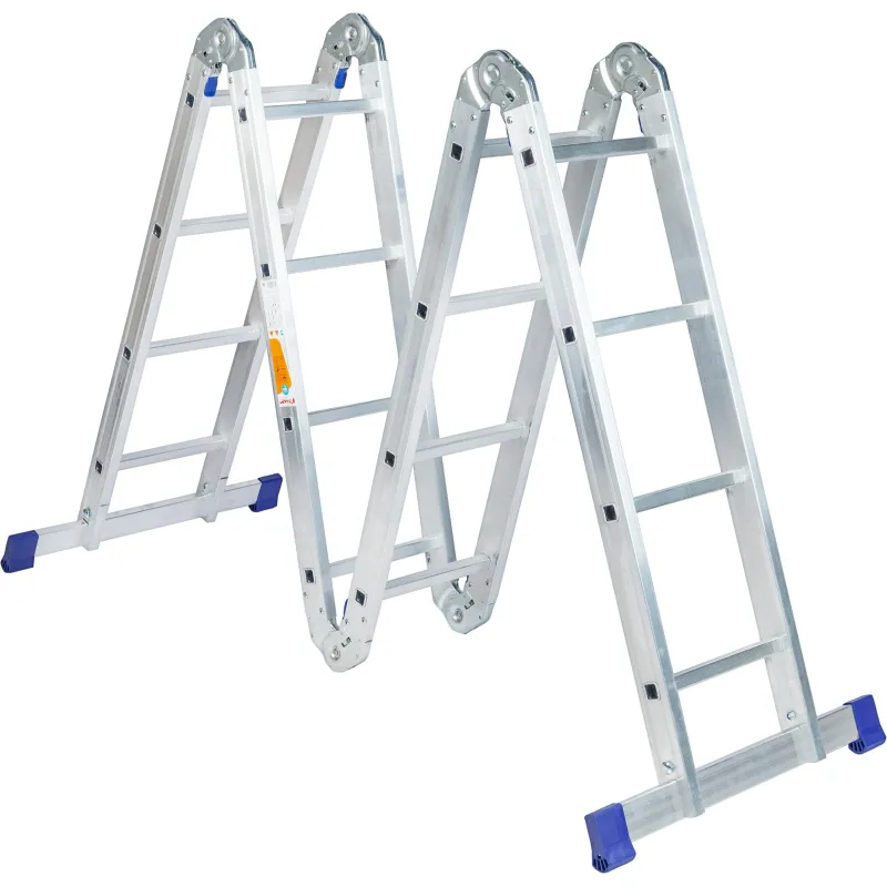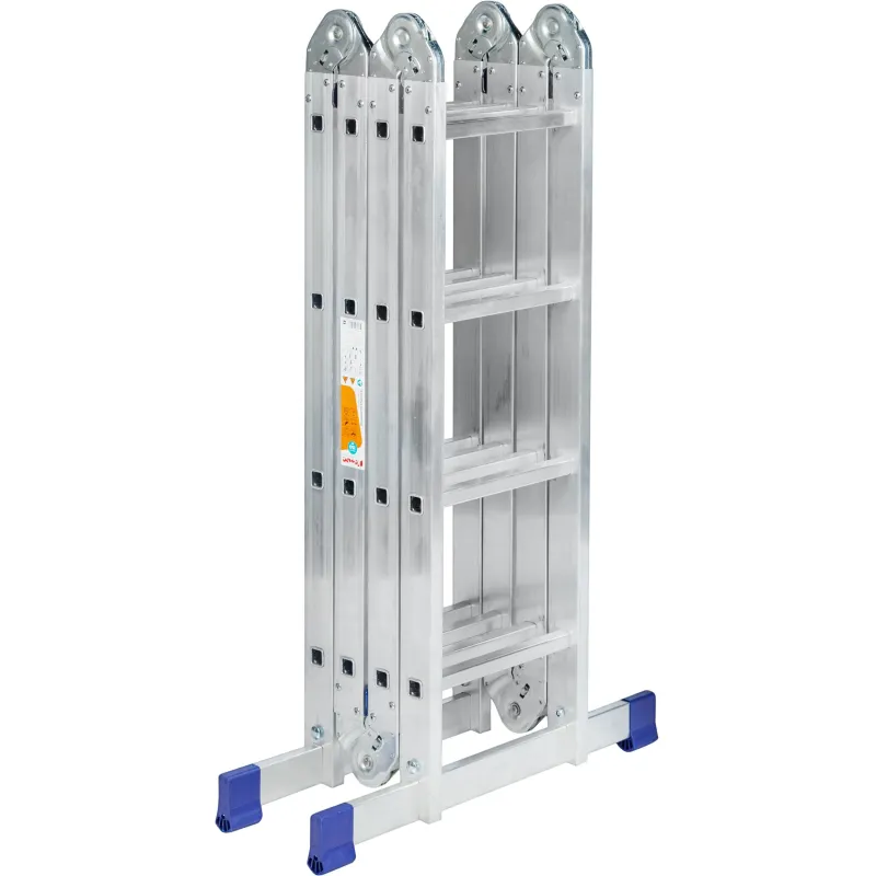 Шарнирная алюминиевая лестница Комус. Представляет собой 4 секции по 4 ступени, которые можно настроить в 4х рабочих положениях. Можно использовать в качестве приставной лестницы, двухсторонней стремянки и помоста. Пригодится в быту — дом, сад, гараж, а также в коммунальной и строительной деятельности.Преимущества изделия:— Противоскользящее рифление на ступенях — пользоваться лестницей безопасно, нога не соскользнет в процессе выполнения работ.— Сочетание легкости и прочности — рама изготовлена из прессованного алюминиевого профиля.— Широкие траверсы — лестница устойчиво фиксируется на горизонтальной поверхности в любом рабочем положении.— Надежные шарнирные механизмы — лестница не шатается в рабочих положениях, смена рабочих положений происходит быстро и легко.— Лестницу удобно хранить и транспортировать, благодаря компактным размерам в сложенном виде. Внешний вид и/или характеристики товара могут быть изменены производителем в соответствии с производственным процессом.