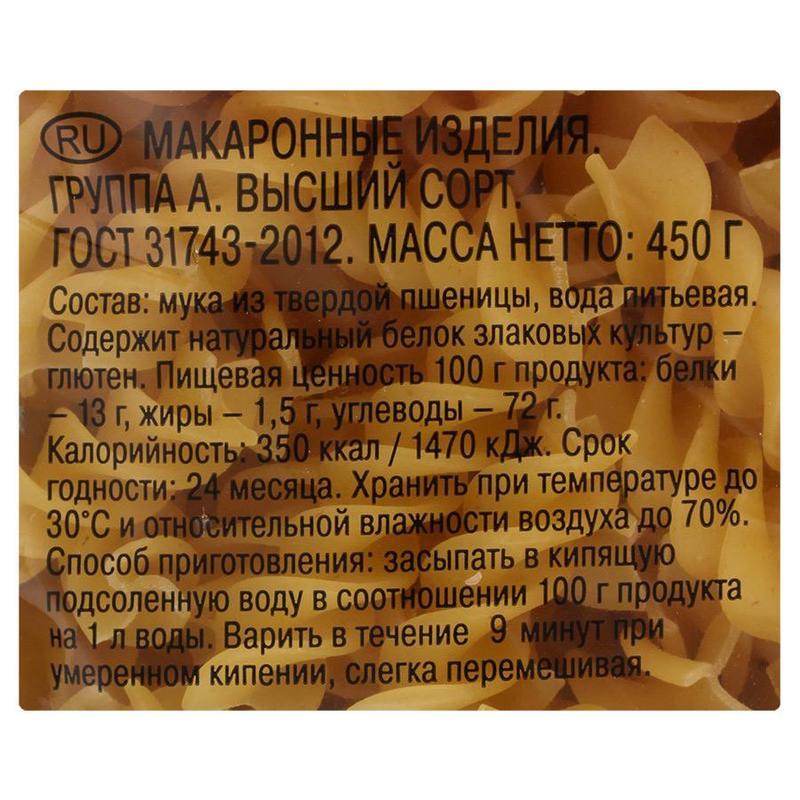 Макароны Шебекинские № 366 Спирали 450 г — это макаронные изделия из твердых сортов пшеницы, которые производятся на современном оборудовании из Италии и максимально приближены по качеству и вкусу к итальянской пасте. Спирали — это короткие макароны закрученной формы. Чтобы получить правильную текстуру al dente, их следует варить примерно 9 минут. Это универсальный вид, поэтому он одинаково хорошо сочетается с густыми мясными соусами, нежными сливочными или легкими овощными. Упакованы в фирменный пакет с «птичкой счастья».