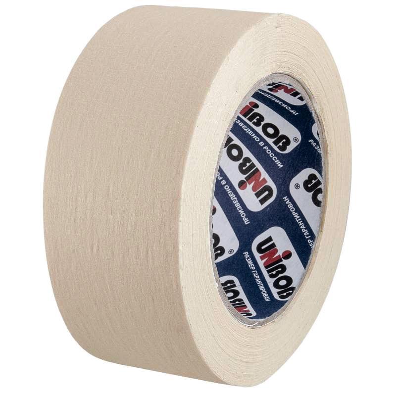 Клейкая лента малярная Unibob белого цвета, ширина 50 мм, длина 50 метров. Применяется для локальной защиты поверхности при проведении малярных, штукатурных и строительных работ. Обеспечивает четкие границы при окрашивании. Основа клейкой ленты — крепированная бумага с влагостойкой пропиткой. Клеевой слой — натуральный каучук на основе растворителя. Рабочая температура: от 10 до 60 градусов.