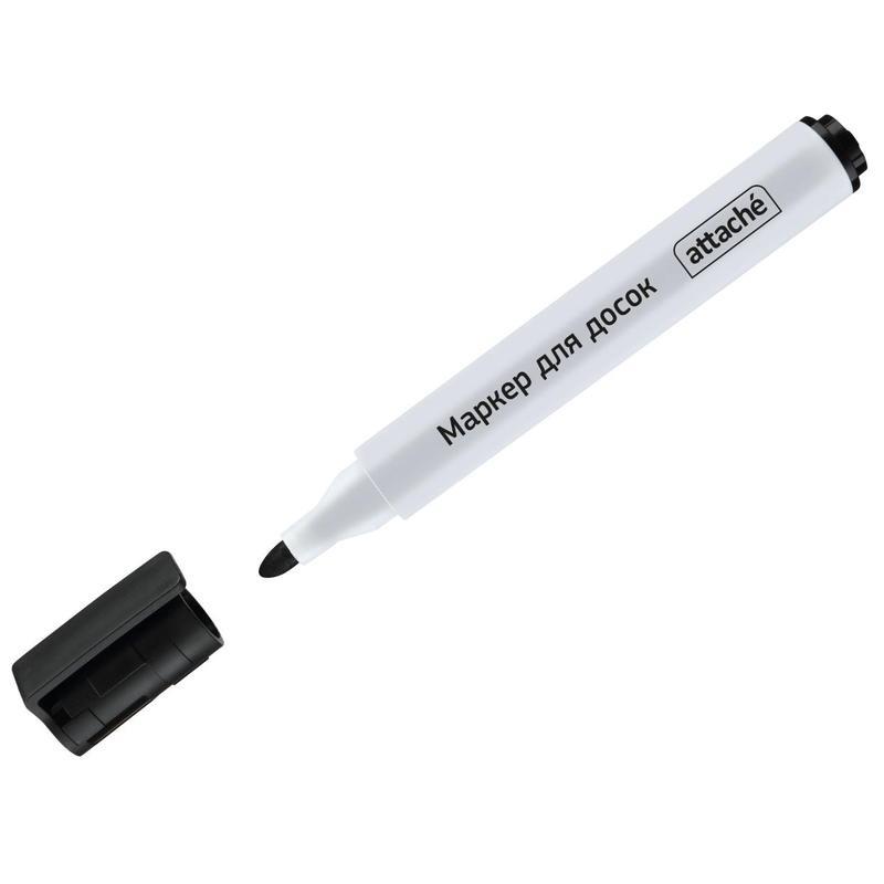 Маркер Аttache Accent с круглым наконечником, предназначенный для письма на белых магнитно-маркерных досках, обладает чернилами на спиртовой основе, обеспечивающими яркое выразительное письмо. Толщина линии письма 1-5 мм в зависимости от силы нажатия на маркер и угла нанесения линии. Цвет чернил: черный. Надписи быстро сохнут, не оставляя подтеков и разводов, стираются только сухой губкой. Благодаря системе Cap Off маркер не высыхает без колпачка не менее 24 часов.