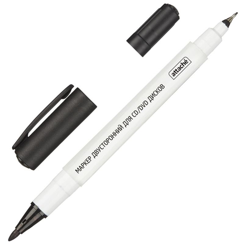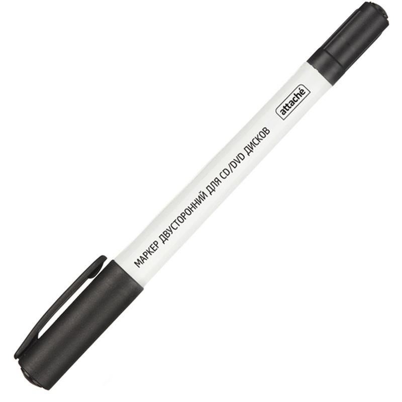 Маркер для CD Attache двусторонний. Применяется для надписей на CD, CD-R и DVD-дисках. Не повреждает информацию, хранящуюся на дисках. Круглый наконечник. Пластиковый корпус. Толщина линии письма — 0,5 и 1,2 мм. Производство — Китай. Чернила черного цвета.