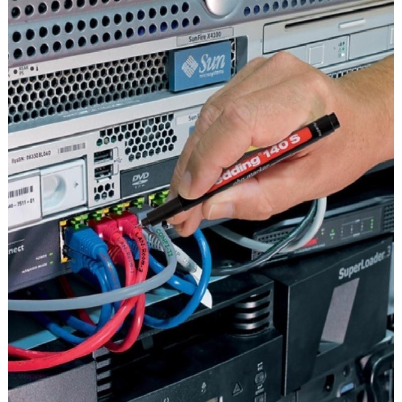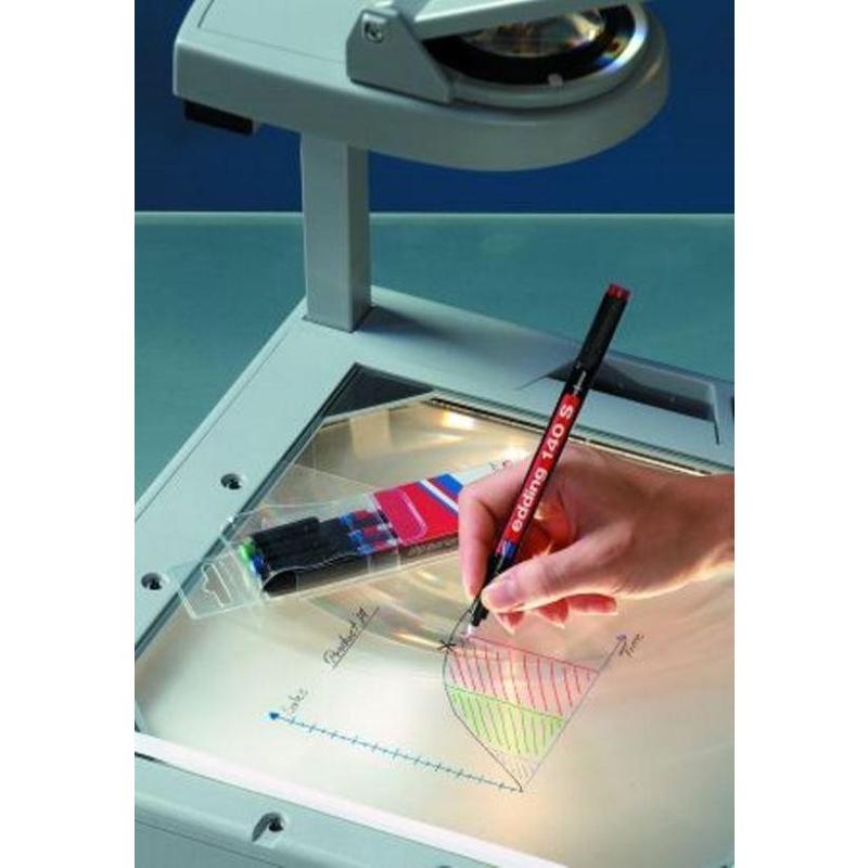Маркер Edding Е140S для проекторных пленок и глянцевых поверхностей с чернилами черного цвета подходит для работы с прозрачными синтетическими пленками, которые используются в презентационных проекторах, и прочие деликатные поверхности. Обеспечивает четкое и яркое изображение при увеличении. Чернила быстросохнущие и влагостойкие. Наконечник круглый, не царапает пленочную поверхность, пишущий узел спроектирован таким образом, что при нанесении чернил на поверхность не требуется нажатия на маркер. Толщина линии 0,3 мм. При необходимости надписи и рисунки корректируются или удаляются полностью спиртосодержащим раствором. Диапазон рабочих температур: от −15 до 40 градусов Цельсия. Корпус маркера изготовлен из прочного пластика. Удобный колпачок с клипом фиксирует маркер Edding E140 S на одежде и позволит иметь его всегда под рукой. Специальный состав чернил не разъедает пленку при хранении. Надпись не смывается водой, устойчива к выгоранию и истиранию. Тонкий наконечник перманентного маркера позволяет подписывать очень мелкие детали, а также наносить надписи на кабели. Предостережение: плотно закрывайте колпачок после применения, держать маркер вдали от огня и прямых солнечных лучей.