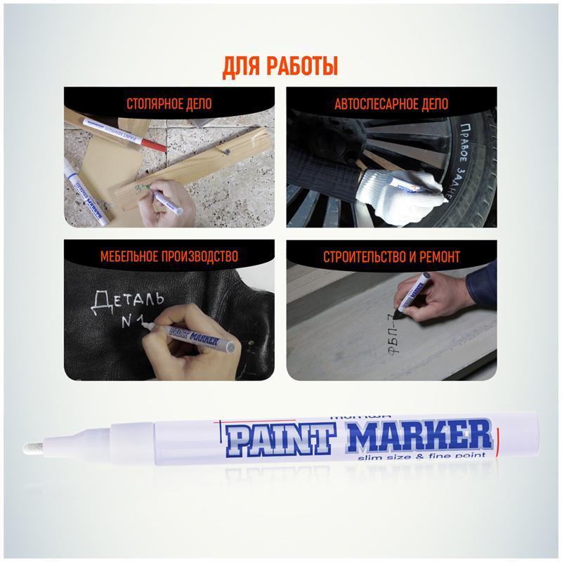 Paint Marker подходит для реставрации дефектов на бытовой технике, обуви, кузове автомобиля, а также надписей на каменных плитах.