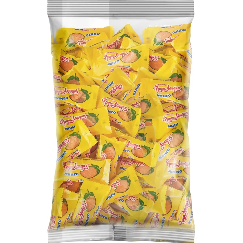 Конфеты Фрутландия желейные со вкусом манго пак 1000 г. Нежная желейная конфета со вкусом сочного манго. Особенностью этих конфет является их желейная текстура, которая обладает выраженным ароматом манго. Конфеты слегка присыпаны сахаром, который прочно держится на мармеладе. Масса нетто: 1000 г.