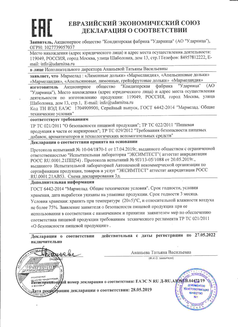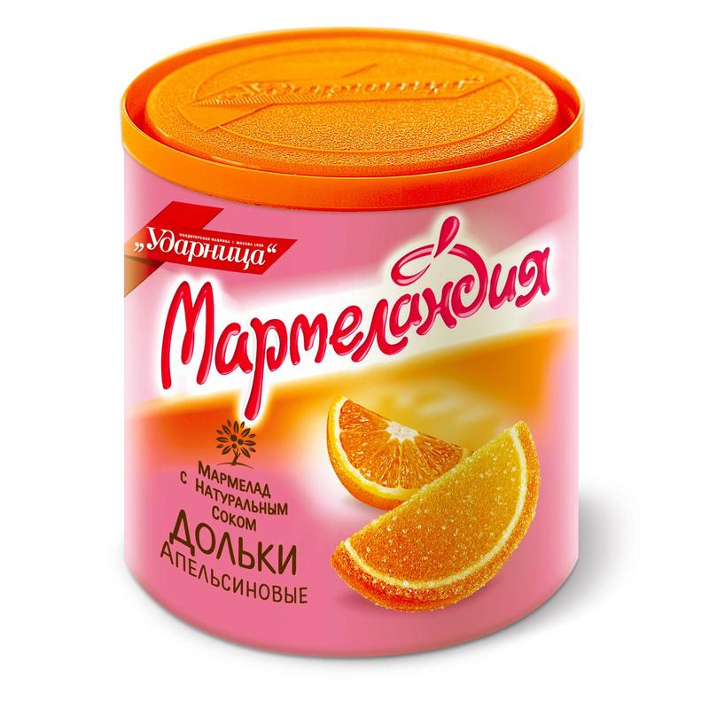 Яркая удобная упаковка(баночка),весом 250гр. Дольки изготавливаются по новой рецептуре с добавлением фруктового сока и натуральных красителей. Пищевая ценность в 100г продукта: Белки-0,1; Жиры-; Углеводы-81; Органические кислоты-1 Энергетическая ценность : 326ккал. Срок годности: 90 дней.Условия хранения: при относительной влажности воздуха не более 70 %, не подвергать воздействию прямого солнечного света и резкому перепаду температур. 18/+5 градусов Цельсия.Производитель: ОАО «КФ УДАРНИЦА». Постный продукт.