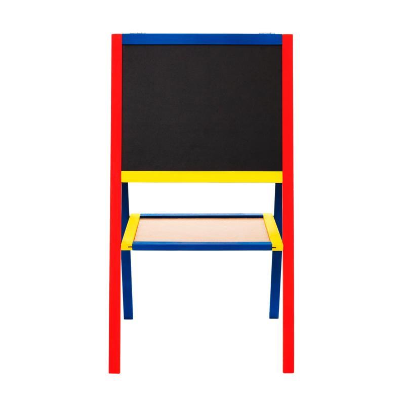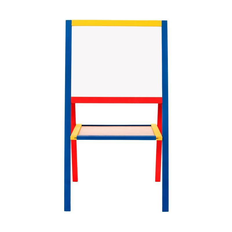 Мольберт детский Attache двухсторонний предназначен для письма и рисования маркерами для белых досок, с одной стороны, и мелом, с другой. Основание и полочка для письменных принадлежностей мольберта выполнены из древесины хвойных пород и окрашены водной акриловой краской. Белая магнитно-маркерная поверхность предназначена для письма маркерами для белых досок и крепления информации на бумажных носителях при помощи магнитов. Черная меловая поверхность — окрашенный специальной краской лист HDF. Рабочее поле: 33,5x43 см. Общий размер: 91x49x3 см. Упаковка — гофрокороб.