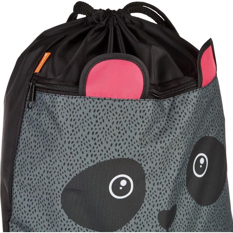 Мешок для обуви № 1 School «Panda». Имеет одно вместительное отделение и дополнительный карман на молнии. Дизайн дополнен вшивными «ушками». Изготовлен из прочного быстросохнущего полиэстера. Затягивается двойным шнурком, можно носить на плечах. Размер: 360x470 мм.