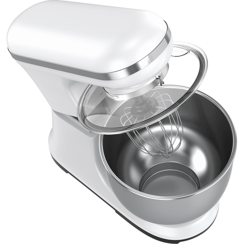 Универсальный белый цвет прибора, металлическая декорация и яркая подсветка скоростной панели управления отлично впишутся в интерьер. Венчик и чаша миксера выполнены из нержавеющей стали, что делает их пригодными для мытья в посудомоечной машине.