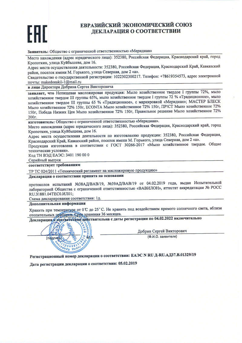 Сертификат соответствия |