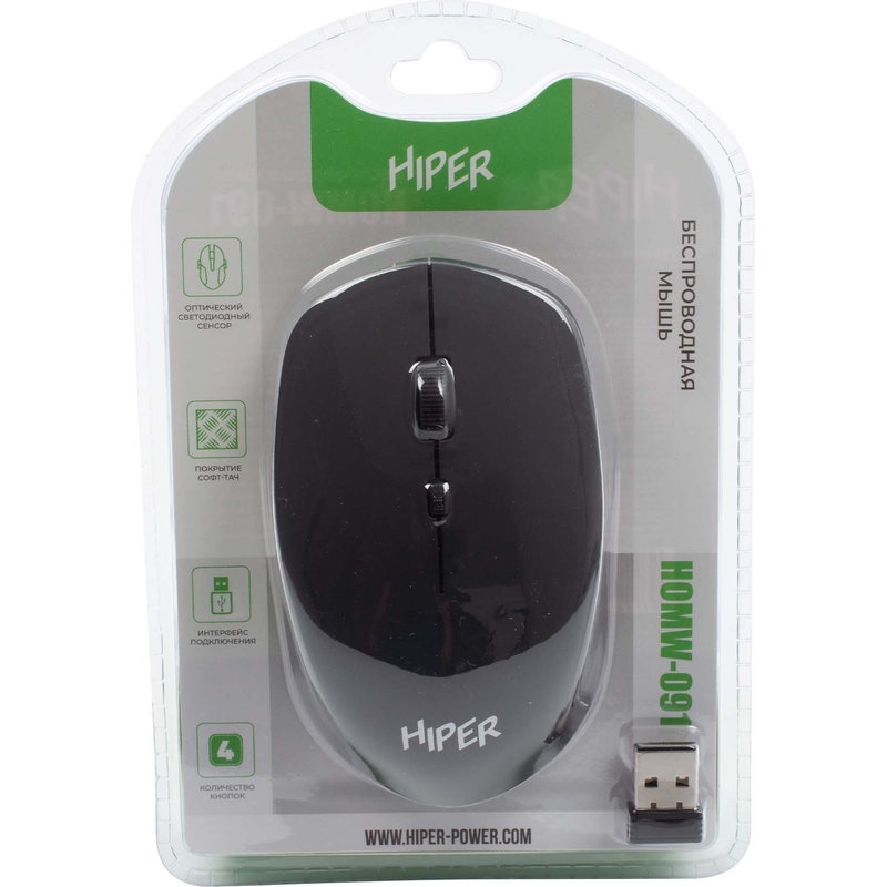 Мышь беспроводная Hiper черная (HOMW-091). Внешний вид и/или характеристики товара могут быть изменены производителем в соответствии с производственным процессом.