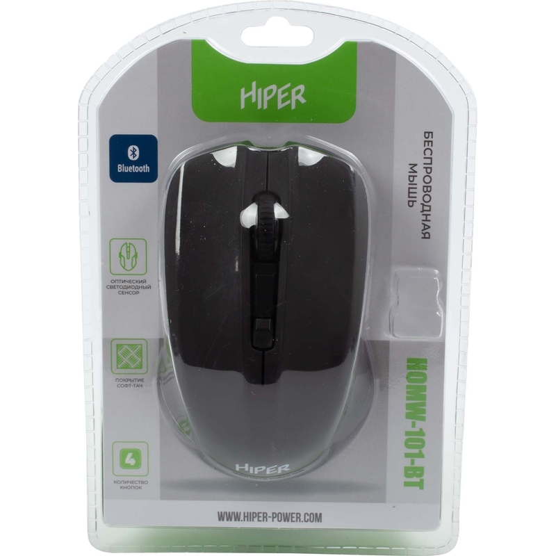 Мышь беспроводная Hiper черная (HOMW-101-BT). Внешний вид и/или характеристики товара могут быть изменены производителем в соответствии с производственным процессом.