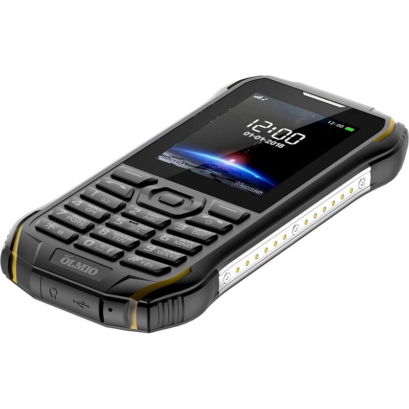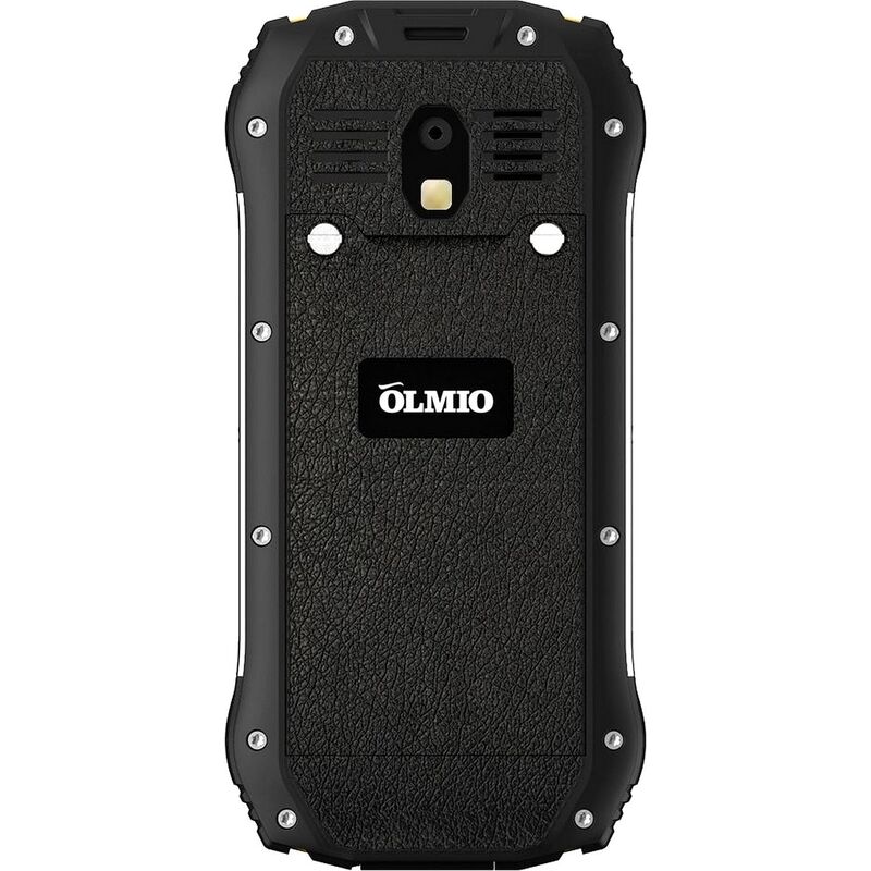 Мобильный телефон Olmio X05 имеет эргономичную форму и высокую автономность. Прочный корпус усилен металлическими вставками, поэтому Olmio X05 не боится падений и ударов. Противоударный телефон не требует дополнительной защиты в виде чехла и неприхотлив в работе. В отличие от других защищенных телефонов, Olmio X05 имеет более компактный размер, поэтому легко помещается в кармане.Olmio X05 — водонепроницаемый телефон, корпус которого защищен от проникновения воды и пыли по стандарту IP68. Это значит, что внутрь аппарата не попадет влага, даже если устройство проведет до получаса на метровой глубине. Все разъемы модели герметично закрыты заглушками.Модный смартфон уже к вечеру требует подзарядки? А владельцы этой модели не зависят от розеток! Фирменный литий-ионный аккумулятор Olmio имеет 1700 мАч емкости и держит заряд до 20 дней в режиме ожидания.В отличие от большинства защищенных телефонов, у модели X05 яркий цветной, хорошо читаемый дисплей диагональю 2,4 дюйма. Телефон работает с двумя активными SIM-картами и получил отдельный слот для карты памяти. Работает с картами объемом до 16 гигабайт.Уверенный прием сигнала обеспечивает проверенный чипсет MTK. Оснащен модулем для беспроводного подключения, FM-приемником, а также очень громким динамиком.В комплекте с мобильным телефоном идут съемная аккумуляторная батарея, зарядное устройство, руководство по эксплуатации и гарантийный талон.