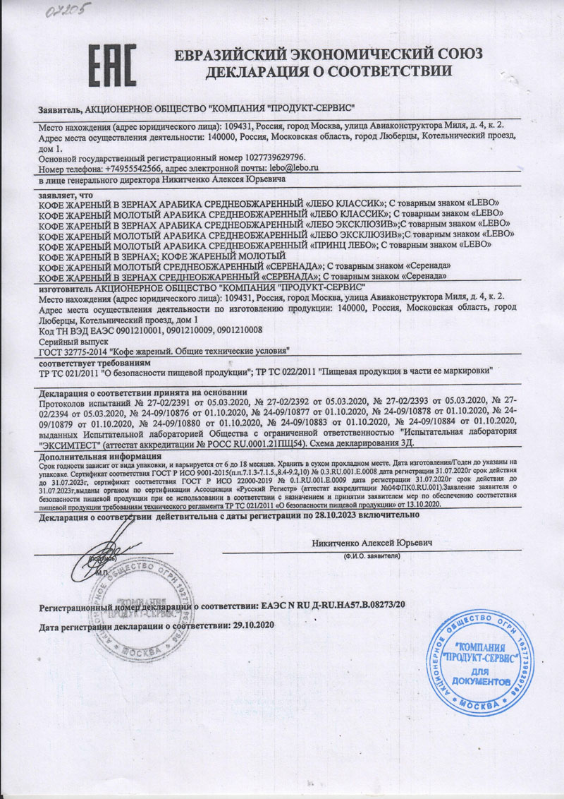 Сертификат соответствия |