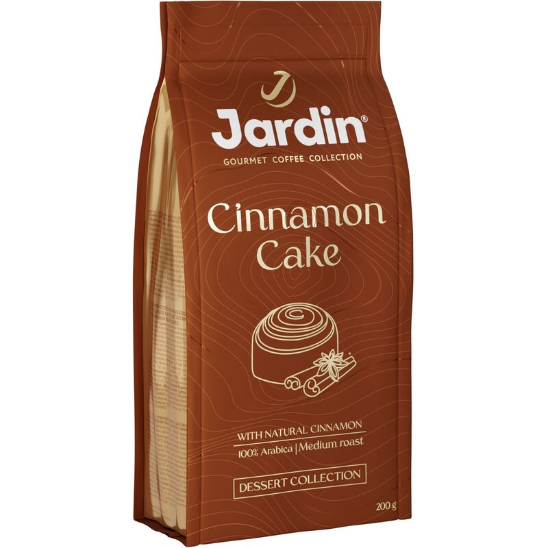 Кофе молотый Jardin Cinnamon Cake 200 грамм (пакет). Jardin Cinnamon Cake — сбалансированный бленд арабики, дополненный натуральной корицей. Этот кофе покорит вас своим мягким вкусом с нежно-пряной нотой и сладковатым послевкусием, а в его аромате вы отчетливо ощутите оттенки чудесной сдобной булочки с корицей. Он поможет вам взбодриться ранним утром, приведет в тонус при интенсивных умственных нагрузках, подарит минутки блаженства после тяжелого рабочего дня. Готовьте напиток в турке, капельной кофеварке, чашке или во френч-прессе — благодаря оптимальному помолу и бережной обжарке он получается поистине изумительным при любом способе заваривания. Прочная герметичная упаковка исключает контакт кофе с кислородом, позволяя сохранить все нюансы его многогранного вкуса.