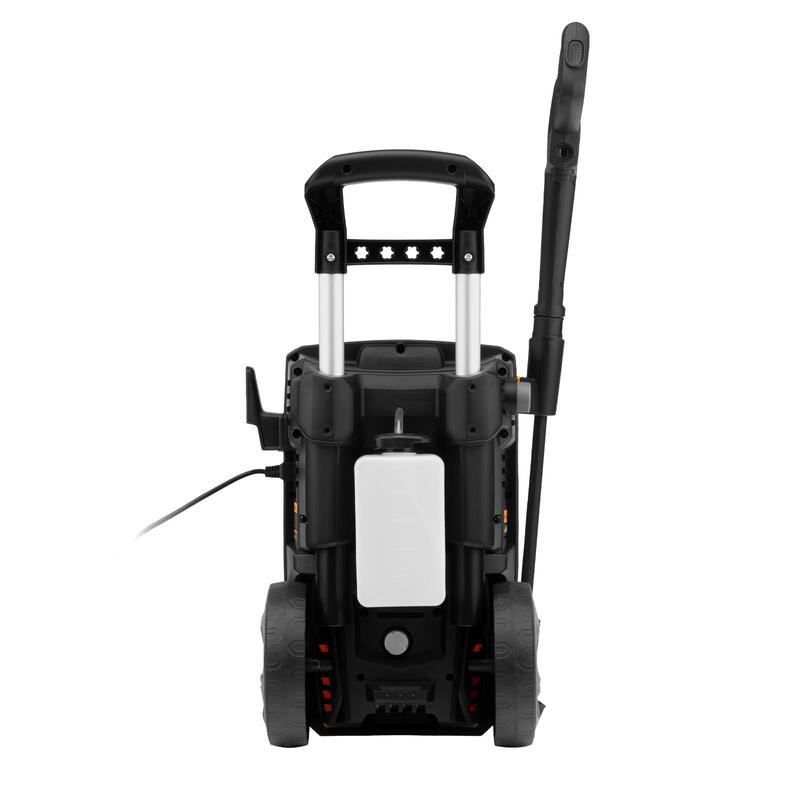 — Увеличенная рабочая зона — шланг длиной 8 м и 7-метровый кабель позволяют свободно перемещаться по участку.