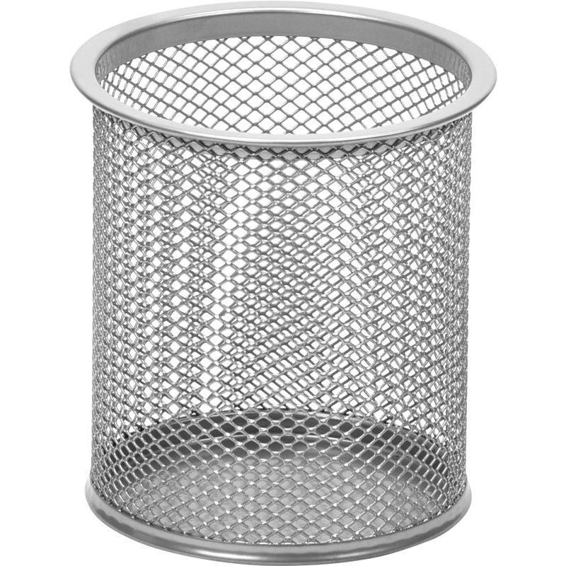 Подставка для письменных принадлежностей в форме стакана металлическая, сетка.Цвет: серебрянный.Диаметр: 89 ммВысота: 100 мм