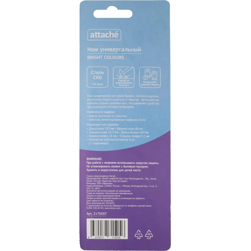 Нож канцелярский для резки бумаги, плотного картона, распечатки корреспонденции и посылок. Эргономичная рукоятка создают удобный хват что добавляет удобства при разрезании плотных материалов.