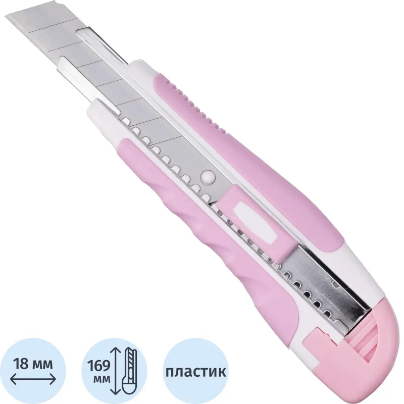 Нож канцелярский для резки бумаги, плотного картона, распечатки корреспонденции и посылок. Эргономичная рукоятка c металлическими направляющими для лезвия увеличивают прочность ножа, создают дополнительную жёсткость при разрезании плотных материалов.