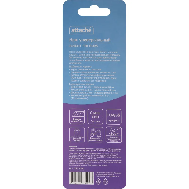 Нож канцелярский для резки бумаги, плотного картона, распечатки корреспонденции и посылок. Эргономичная рукоятка создают удобный хват что добавляет удобства при разрезании плотных материалов.