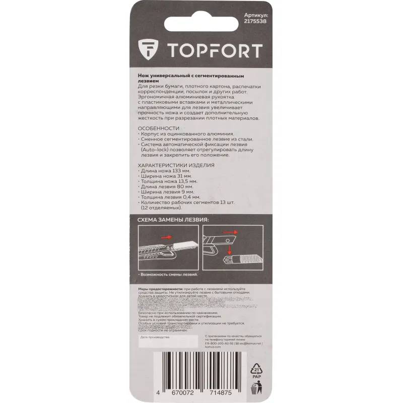 Нож универсальный TOPFORT 9 мм (SX96N)