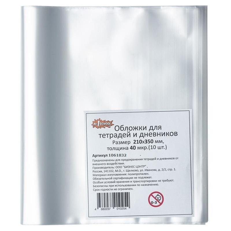Обложка для школьных тетрадей выполнена из прозрачного полипропилена плотностью 40 мкм. Размер — 350x210 мм. Обложка позволяет защитить их от влаги, загрязнений и механических повреждений. Подходит к дневникам только в мягкой обложке.