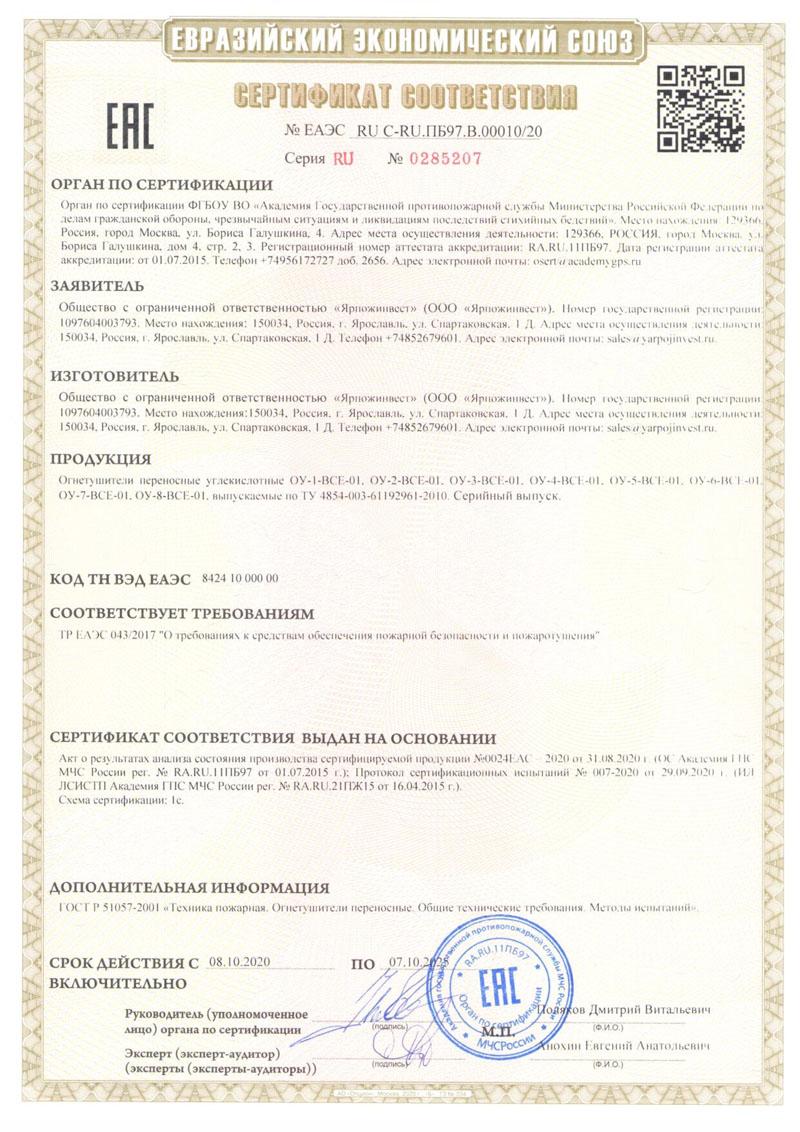 Комплектация: огнетушитель, гибкий шланг с раструбом, паспорт.