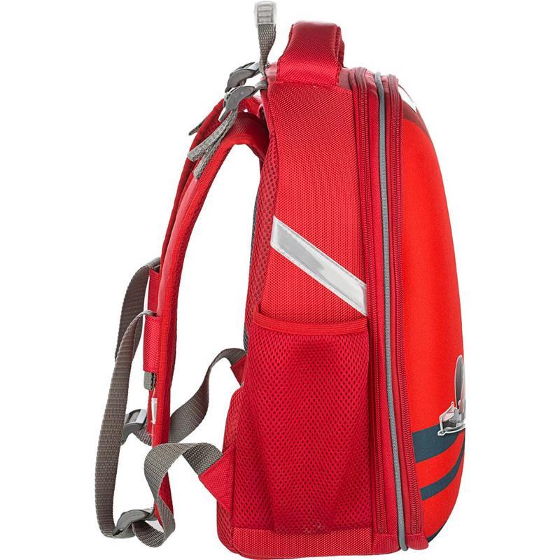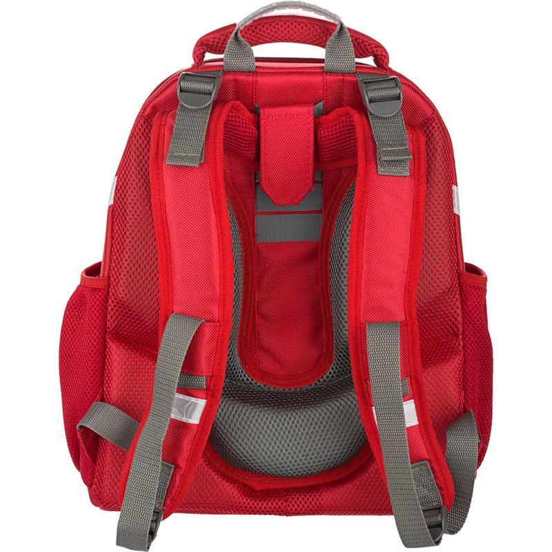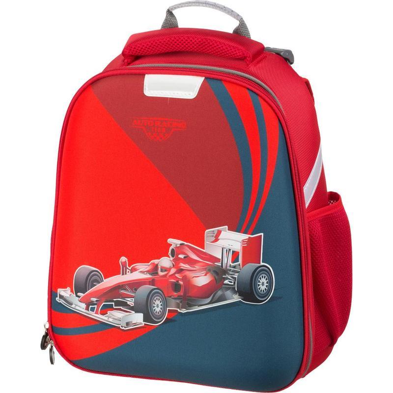 Ранец для мальчиков ортопедический. Прочная конструкция ранца надежно защищает его содержимое за счет плотного формованного материала. Жесткая ортопедическая спинка с мягкими анатомическими вставками с поддержкой в области поясницы. Широкие удобные лямки из воздухообменного сетчатого материала имеют систему регулировки по росту ребенка, что позволяет добиться наиболее комфортного расположения ранца на спине. Плотное, устойчивое дно на ножках. Ранец имеет два основных отдела на молнии. В первом отделении — сетчатый карман. Во втором — гибкая перегородка, предназначенная для удобного хранения книг и тетрадей. Также на ранце по бокам расположены сетчатые карманы для мелких принадлежностей. Светоотражающие элементы на лицевой стороне, боковых частях ранца, а также на лямках. Размер: 280x145x360 мм.