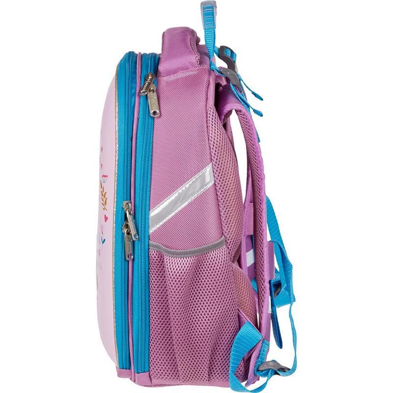 Ранец для девочки ортопедический. Прочная конструкция ранца надежно защищает его содержимое за счет плотного формованного материала. Жесткая ортопедическая спинка с мягкими анатомическими вставками с поддержкой в области поясницы. Лямки из воздухообменного сетчатого материала имеют систему регулировки по росту ребенка, что позволяет добиться наиболее комфортного расположения ранца на спине. Плотное, устойчивое дно на ножках. Светоотражающие элементы на лицевой стороне, боковых частях ранца, а также на лямках. Ранец имеет два основных отдела на молнии. В первом отделении — сетчатый карман. Во втором — гибкая перегородка, предназначенная для удобного хранения книг и тетрадей. Также на ранце по бокам расположены сетчатые карманы для мелких принадлежностей. Благодаря устойчивому дну и ножкам ребенку будет удобно находить нужные учебники и тетради. Размер: 280x145x360 мм.