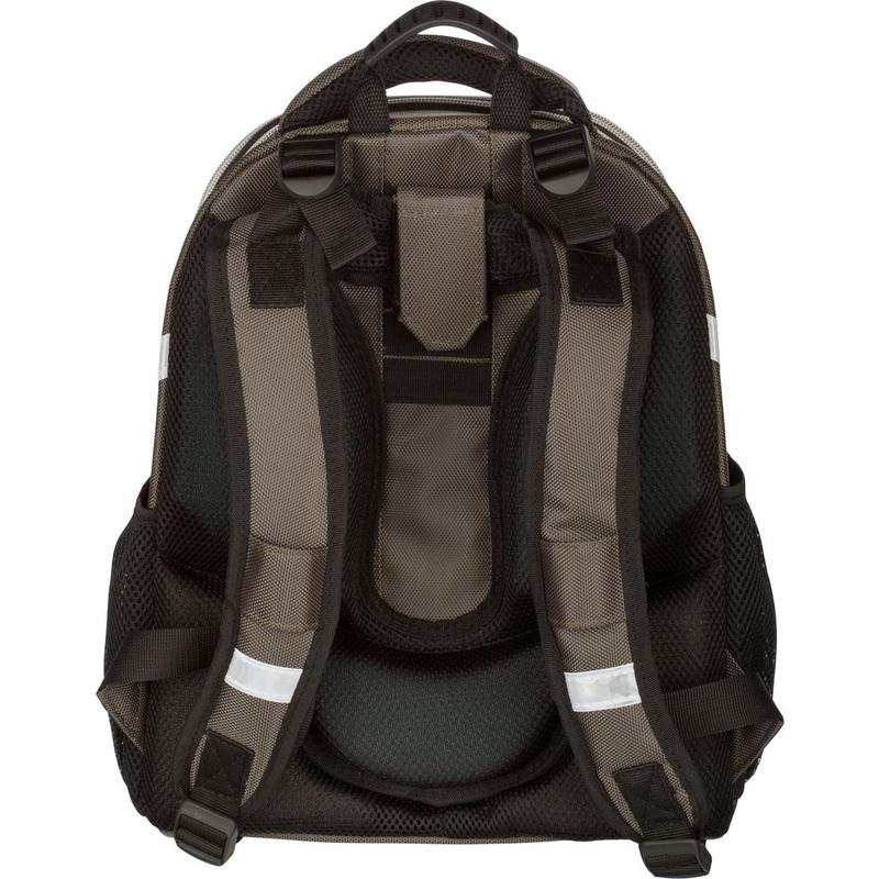 Ранец для мальчика ортопедический. Имеет жесткий каркас компактной обтекаемой формы и эргономичную ортопедическую спинку с дышащей сеточкой, что обеспечивает комфортное использование каждый день. Широкие удобные лямки регулируются по длине и по высоте спинки — легко подогнать под рост ребенка. Ранец имеет два больших отделения на молнии. В основном отделении имеется перегородка для рабочих тетрадей и других учебных материалов формата А4, а также расписание уроков. Во втором отделении — карман-сетка и карман-органайзер. Ранец оснащен двумя ручками: одна узкая, чтобы вешать на парту, вторая широкая и мягкая, чтобы удобно носить в руке. По бокам пришиты карманы для бутылки из прочной сетки. На лямках и каркасе ранца имеются светоотражающие элементы. Плотное дно удерживает форму. Этот ранец обратит на себя внимание — он светится в темноте. На рисунок нанесена специальная люминесцентная краска, которая накапливает свет в течение 10-30 минут и в темноте дает мягкое свечение. Чем сильнее интенсивность источников света, тем ярче эффект. Наиболее подходящие источники света: солнце, дневной свет, лампы дневного света. Размер: 320x215x360 мм.