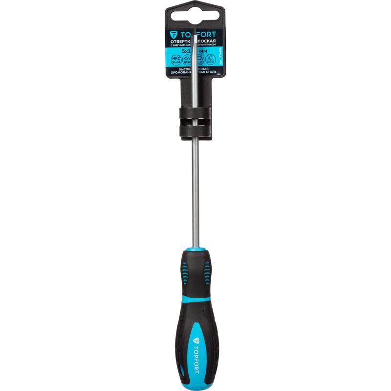 Отвертка шлицевая Topfort SL 5.5×150 для работы с крепежными изделиями резьбовых соединений с плоским шлицем.Особенности изделия:— Эргономичная двухкомпонентная рукоятка с вставками из термопластичного каучука (TPR вставка) снижает нагрузку на кисть и способствует крепкому захвату инструмента.— Стержень выполнен из закаленной и отпущенной хромованадиевой стали, способной выдерживать значительное приложение силы при работе с крепежом, устойчив к коррозии, износу и деформации.— Намагниченный наконечник облегчает работу с крепежом небольшого размера, позволяя монтировать или демонтировать крепежные элементы точно и быстро.— Плотная посадка обеспечивает лучшую передачу крутящего момента и исключает повреждение рабочих граней.Характеристики изделия:— Длина стержня — 150 мм— Диаметр стержня — 5.5 мм Внешний вид и/или характеристики товара могут быть изменены производителем в соответствии с производственным процессом.