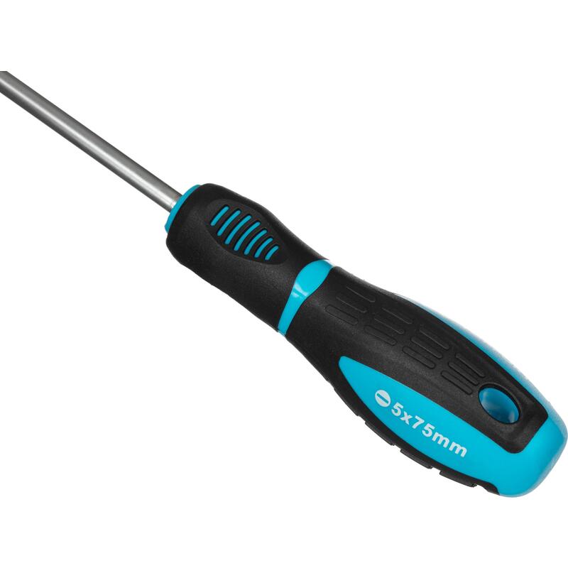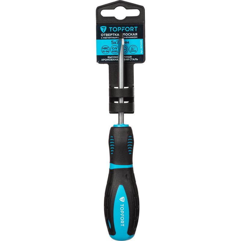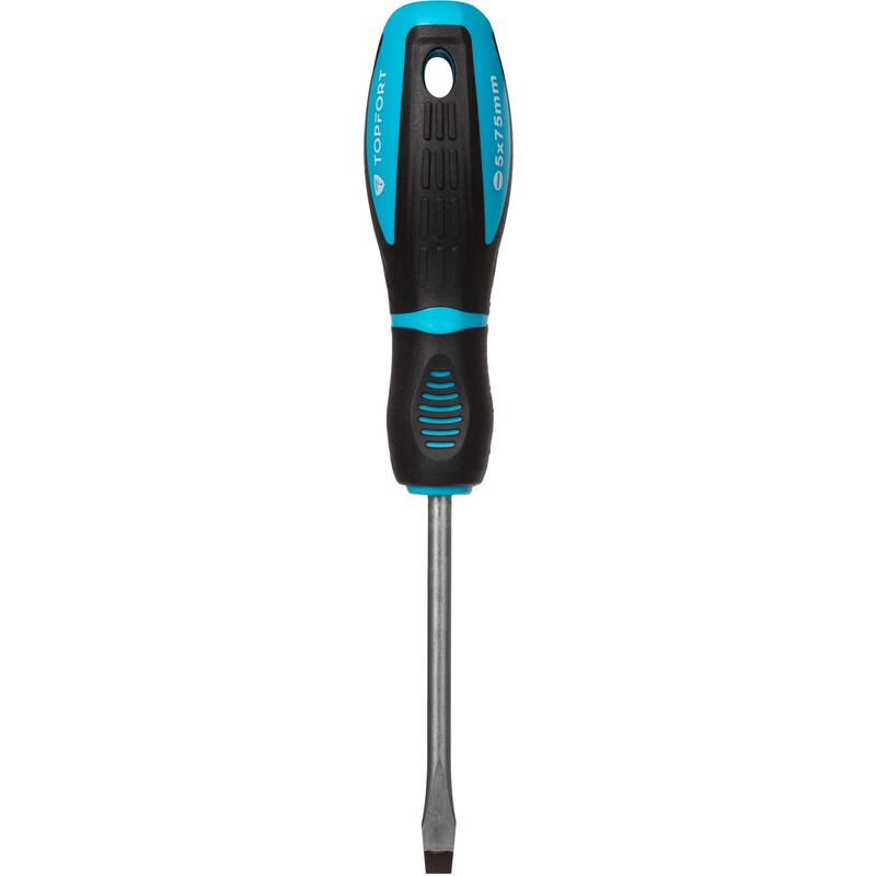 Отвертка шлицевая Topfort SL 5×75 для работы с крепежными изделиями резьбовых соединений с плоским шлицем.Особенности изделия:— Эргономичная двухкомпонентная рукоятка с вставками из термопластичного каучука (TPR вставка) снижает нагрузку на кисть и способствует крепкому захвату инструмента.— Стержень выполнен из закаленной и отпущенной хромованадиевой стали, способной выдерживать значительное приложение силы при работе с крепежом, устойчив к коррозии, износу и деформации.— Намагниченный наконечник облегчает работу с крепежом небольшого размера, позволяя монтировать или демонтировать крепежные элементы точно и быстро.— Плотная посадка обеспечивает лучшую передачу крутящего момента и исключает повреждение рабочих граней.Характеристики изделия:— Длина стержня — 75 мм— Диаметр стержня — 5 мм Внешний вид и/или характеристики товара могут быть изменены производителем в соответствии с производственным процессом.
